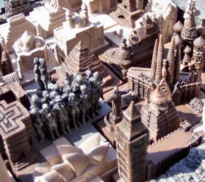 Chaque pièce en résine de Cathédral World représente un bâtiment emblématique.