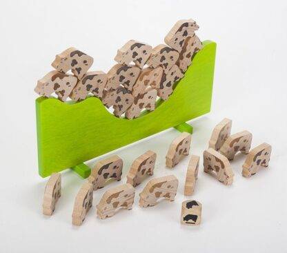 Empilez les vaches de différentes couleurs, selon les instructions du dé, sans les faire tomber. Le premier joueur qui fait tomber une ou plusieurs vaches perd la partie !