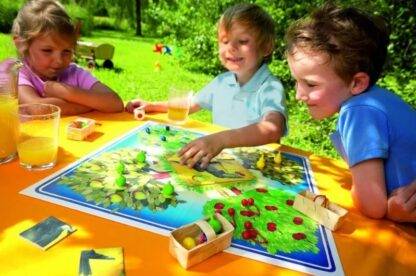Voici la version géante du Verger pour le plus grand plaisir des enfants. On dépose les fruits sur les arbres et chaque joueur reçoit un panier.